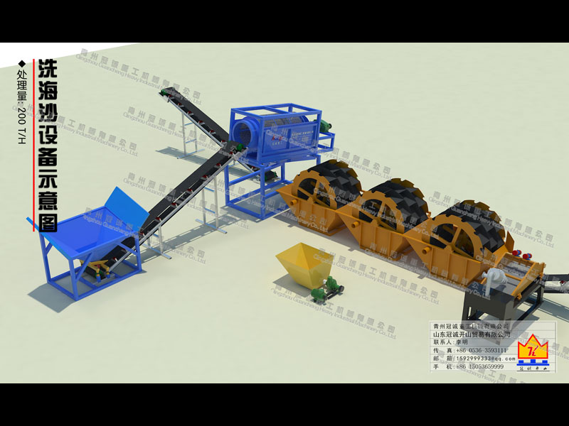 1、如用戶洗選的全是砂子而沒有石子的話,生產(chǎn)線的配置如下:料倉——輸送帶——洗砂機——輸送機。